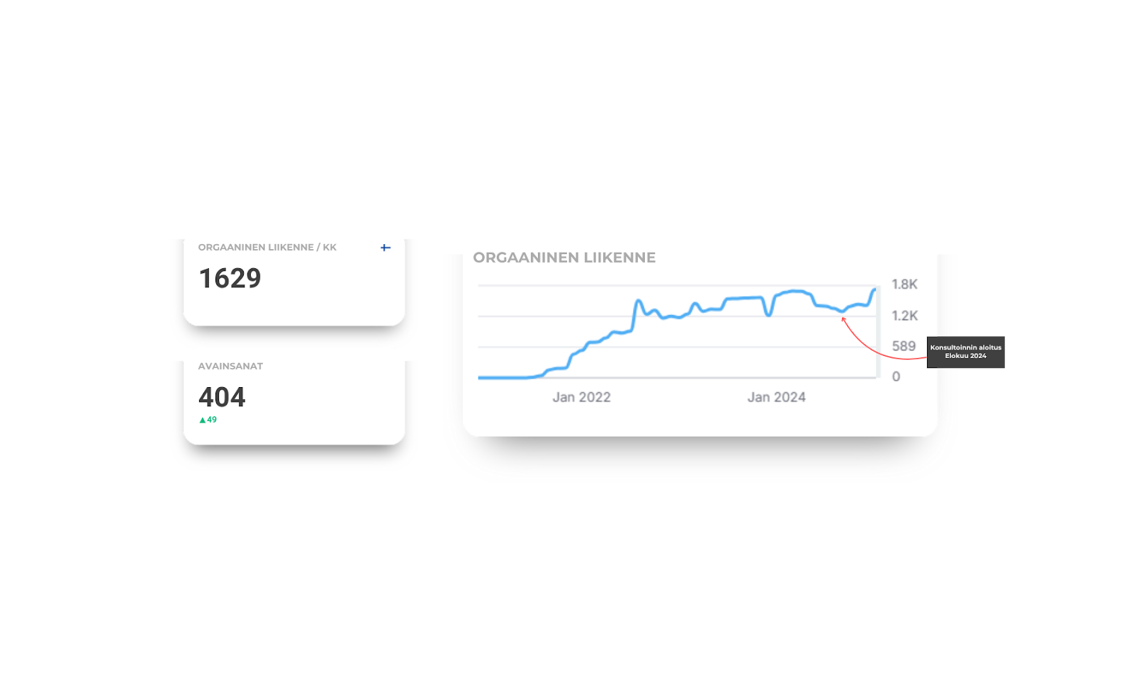 Aeronautica Arena lähti kehittämään hakukonenäkyvyyttään tavoitteena ottaa SEO haltuun täysin omin voimin. Koulutuksen myötä markkinointivastaava sai selkeät työkalut teknisten virheiden korjaamiseen, hakua vastaavan sisällön tuottamiseen ja tulosten analysointiin. Yhdistelmä käytännön opetusta, yhdessä tehtyjä sisältöjä ja kevyttä jatkokonsultointia loi vahvan perustan pitkäjänteiselle optimoinnille. Tulokset puhuvat puolestaan, sillä orgaaninen liikenne kasvoi 9 kuukaudessa yli 33 %, täysin heidän omalla tekemisellään.