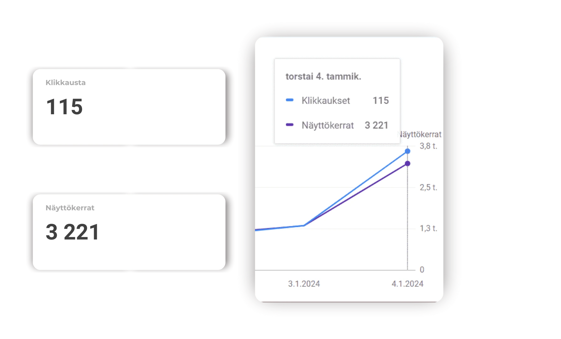 Verkkokaupan osalta tuotteet alkoivat saada omia sijoituksiaan heti julkaisun jälkeen. Tuotekuvauksia etsittiin hakukoneista ja pitkät tuotehakusanat toivat ostovalmiita asiakkaita suoraan tuotesivuille. Google-mainonta tuki tätä kehitystä tuomalla lisänäkyvyyttä ja välitöntä kysyntää.