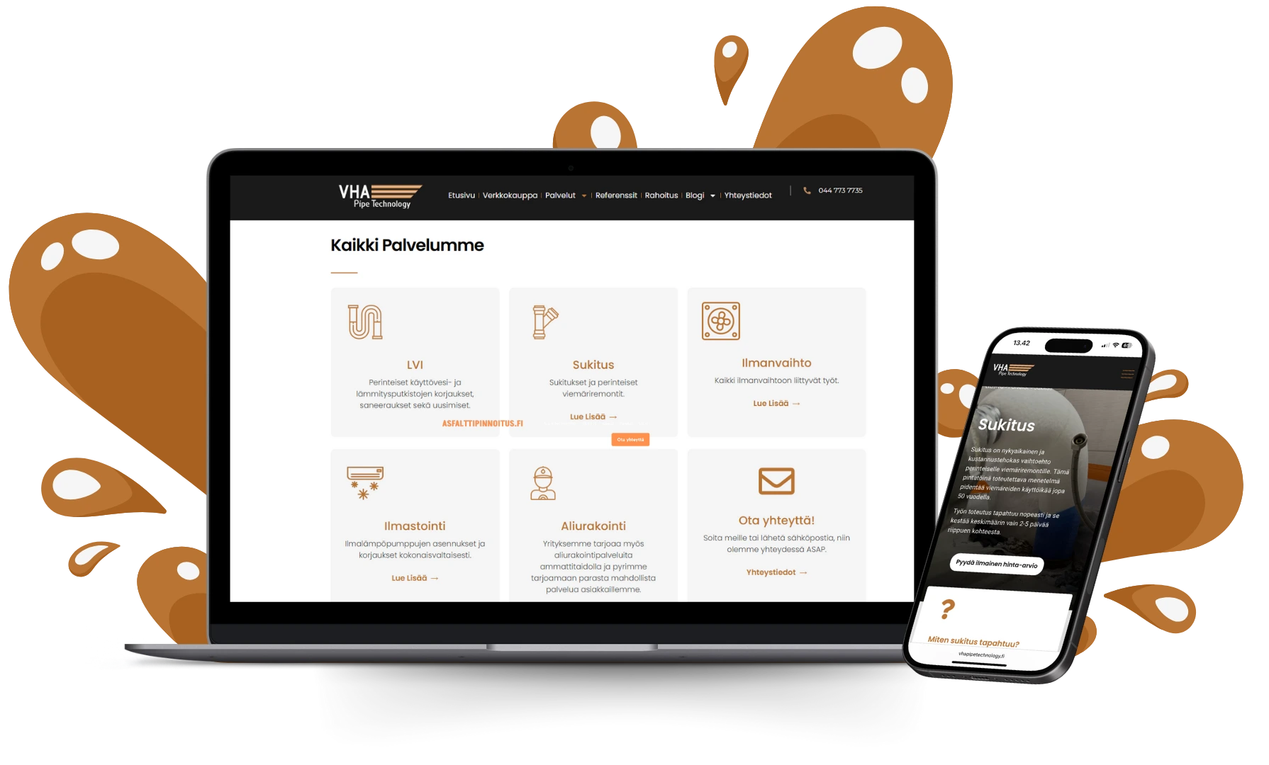 VHA Pipe Technology Oy on Jyväskyläläinen LVI-alan yritys, joka tunnetaan täsmällisestä ja suoraviivaisesta tekemisestään. Yrityksellä oli avattu omat verkkosivut loppuvuodesta 2022, mutta sivut eivät tuottaneet käytännössä lainkaan liikennettä. VHA Pipe Technology halusi näkyä hakutuloksissa heille tärkeillä hakusanoilla, mutta heillä ei ollut ymmärrystä miten Google hakukoneoptimointi toimii. Yritys otti yhteyttä meihin ja yhteistyö aloitettiin.