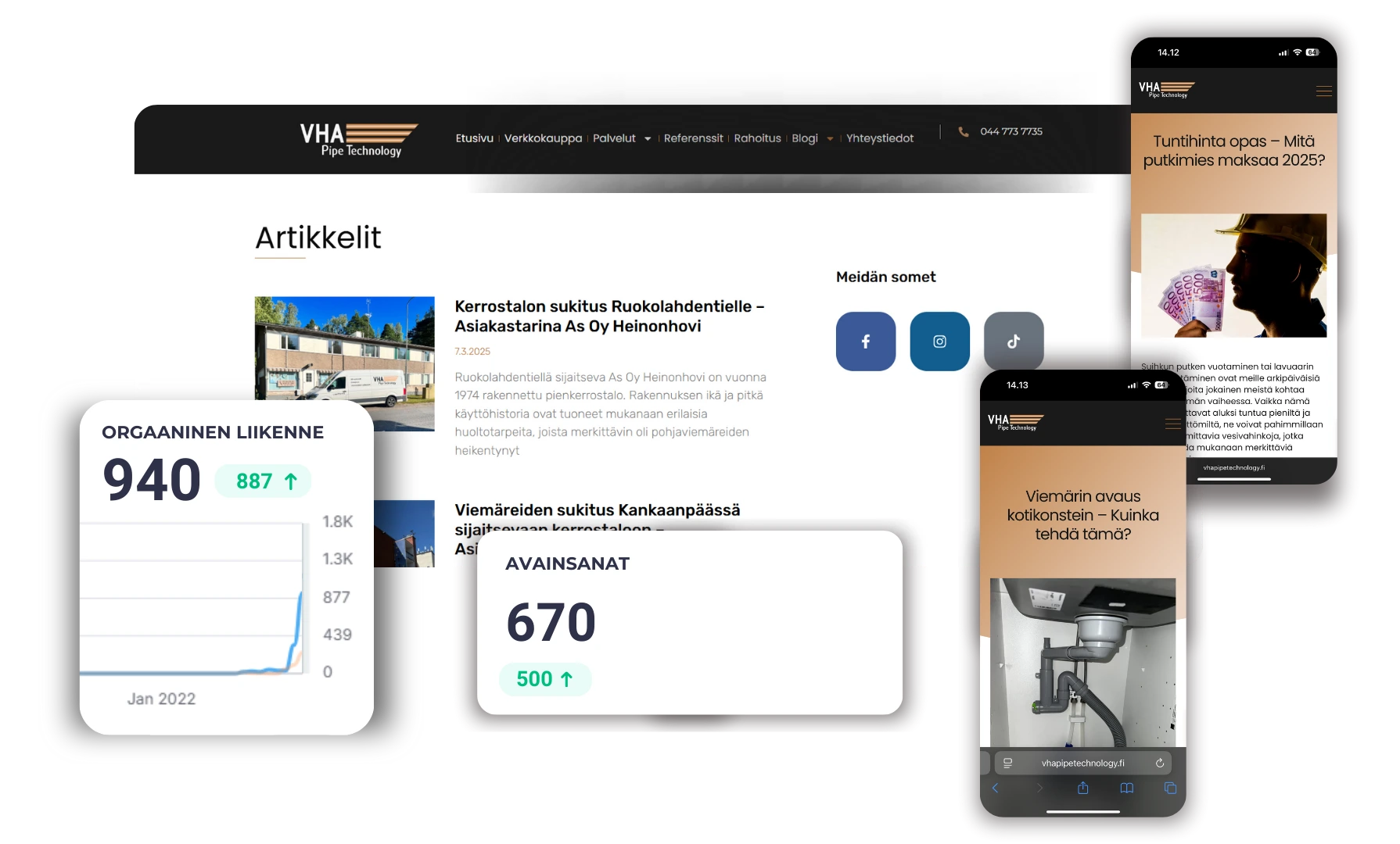 Lopputuloksena VHA saa nyt yhteydenottoja ja tilauksia verkosta jatkuvasti. Verkkosivusto on nyt yrityksen tärkein myynnin ja asiakashankinnan kanava. Kasvu ei ollut sattumaa, vaan se rakennettiin.