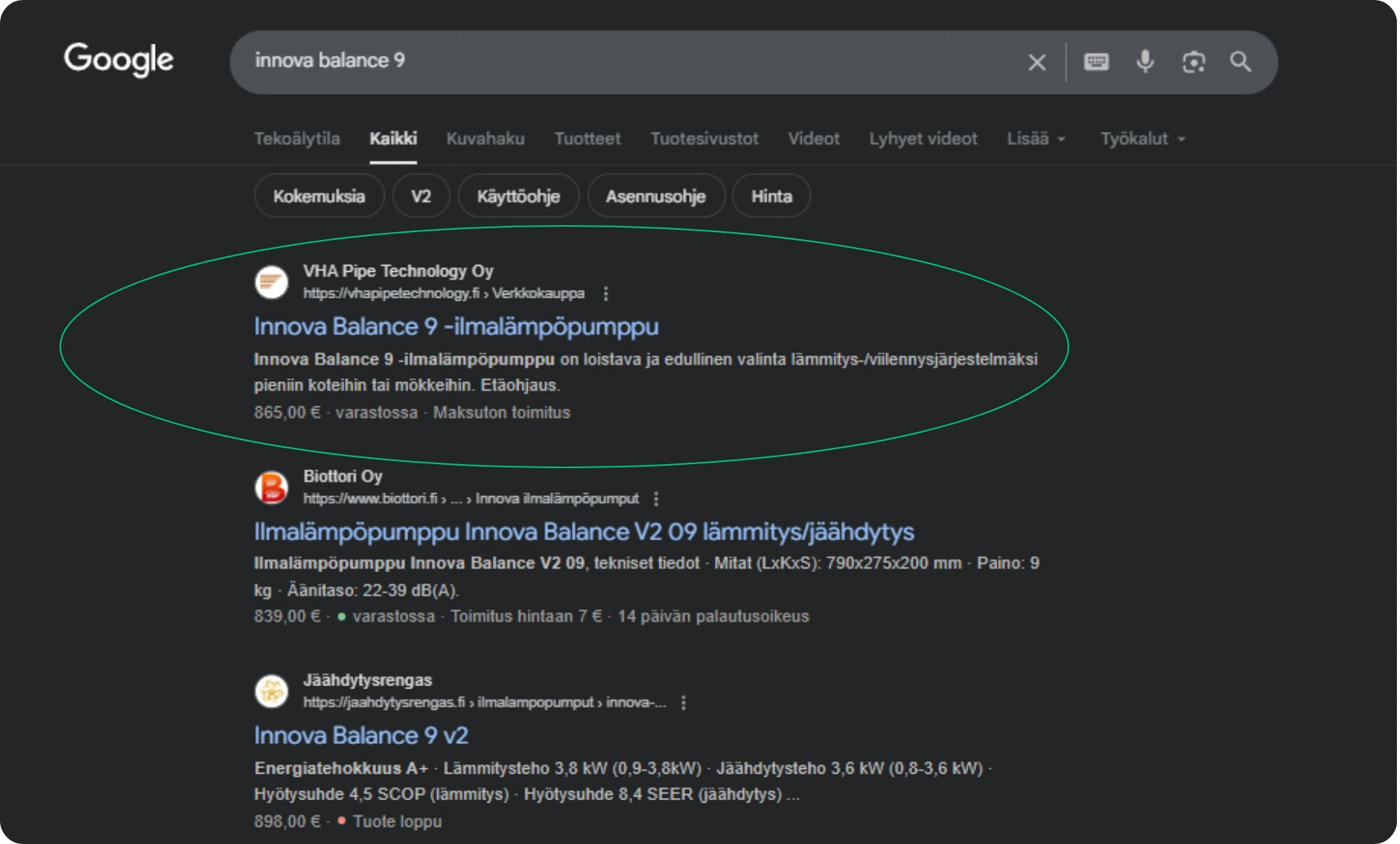 Strategiamme onnistui ja saimme useat tuotteet suoraan hakutulosten kärkeen.